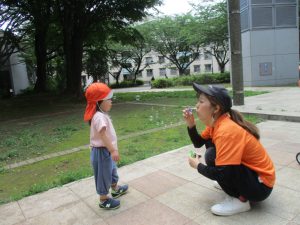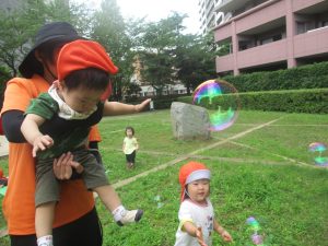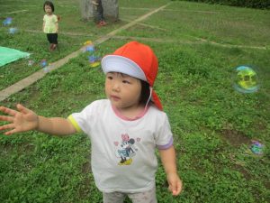 シャボン玉を追いかけたり飛んでいく様子をじーっと見つめておりとても可愛いです♪
