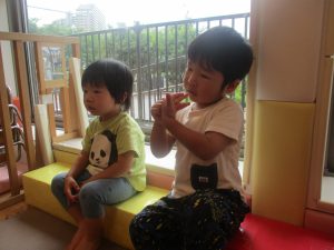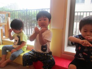 また、「かたつむり」や「たなばたさま」など季節の歌も取り入れて、この季節ならではの音楽や季節感も楽しんで感じているところでございます♪
