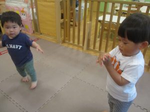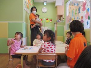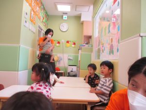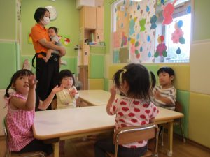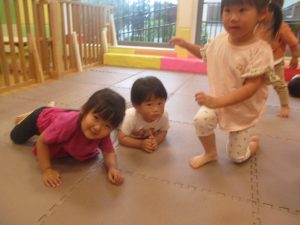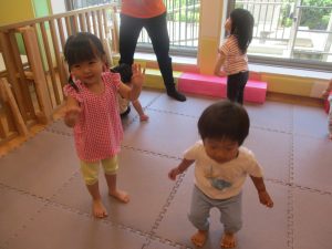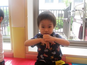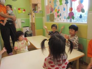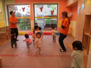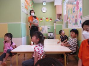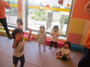 0歳児クラスのお子様たちも睡眠時間の合間を見ながら活動に参加しております♪