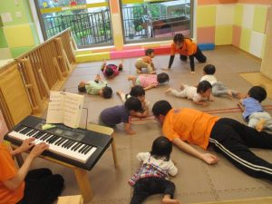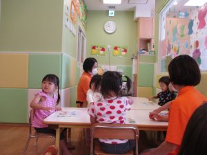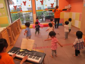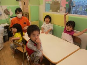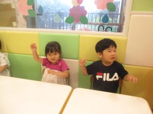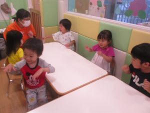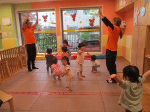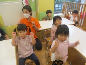 さくらさくらんぼ体操も引き続き活動に取り入れておりますが、6月にもなるとピアノの1小節を聞いただけで「かめさん!」や「時計~♪」と動き始めるお子様達の姿が見られておりますよ♡
