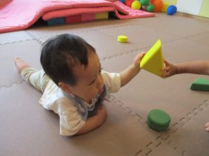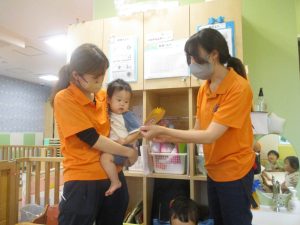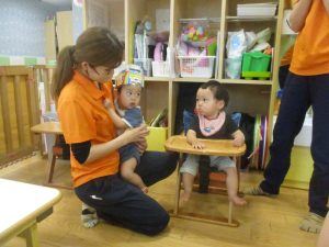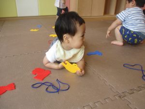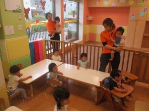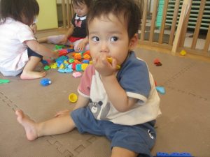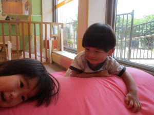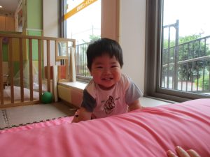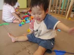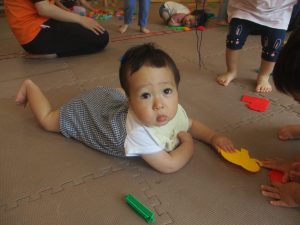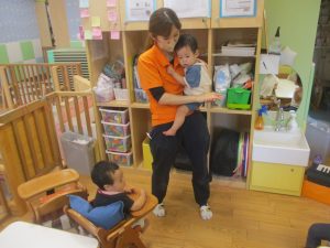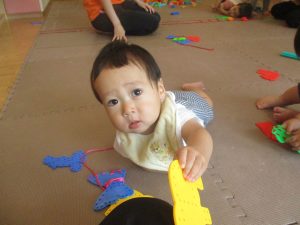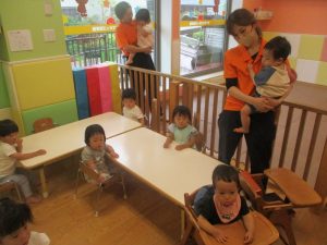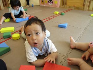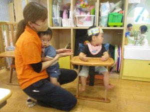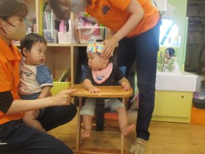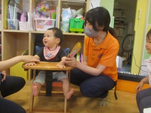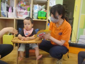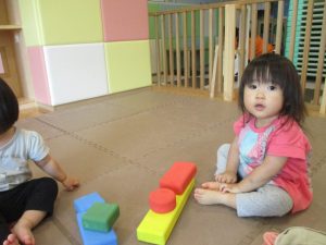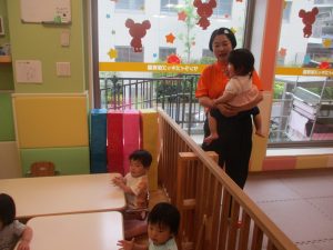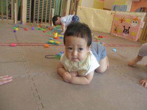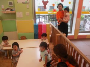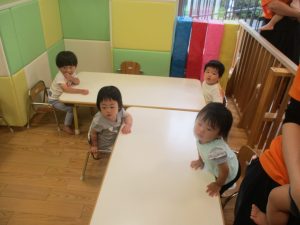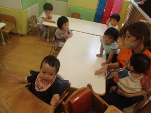 0歳児クラスのお友達は暑さを考慮して室内にて過ごしました!
