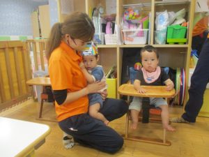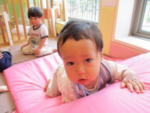 0歳児クラスのお友達2名。