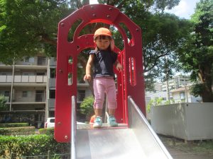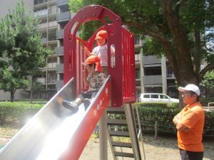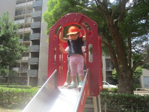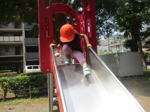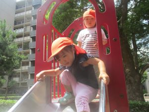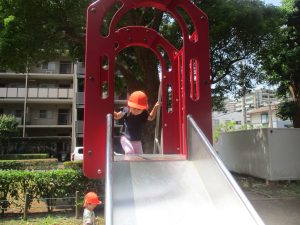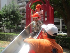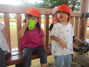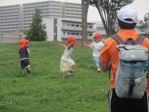 2歳児クラスのお友達は防災公園にて過ごしました!