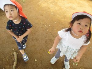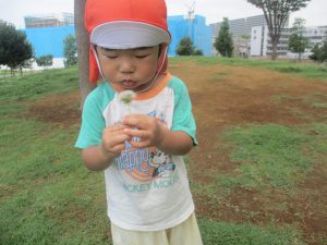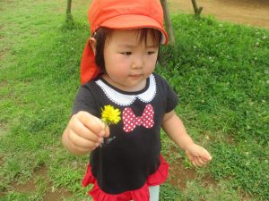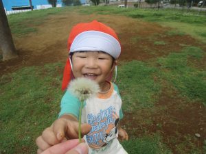 広場でのかけっこを楽しんだり、タンポポを見つけては真剣な眼差しで見つめておりました。