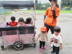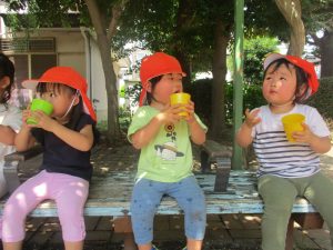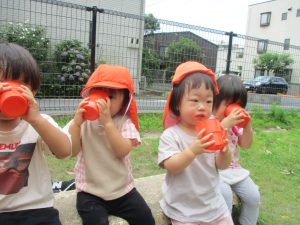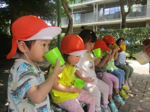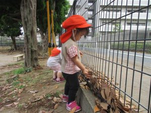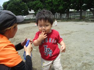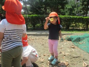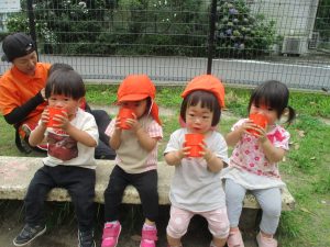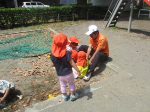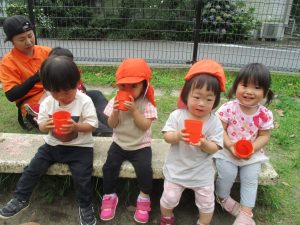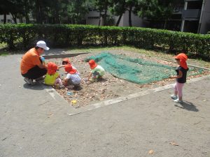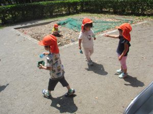 明日から水遊びが本格的に始まる為、戸外遊びはしばらくお預けですかね♪