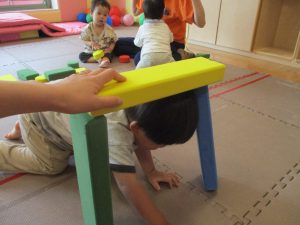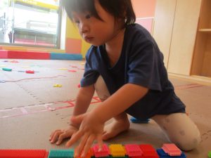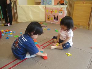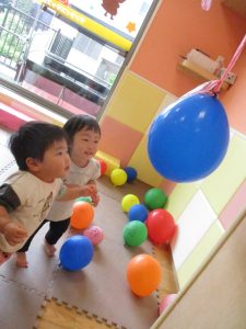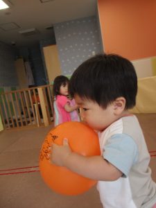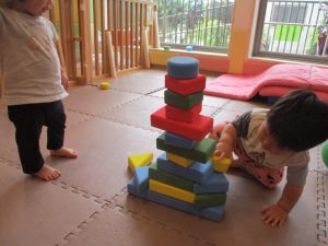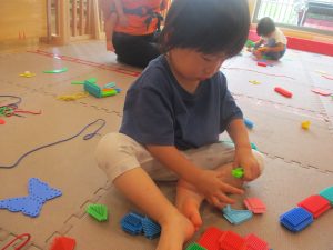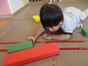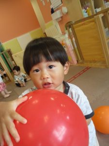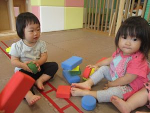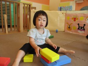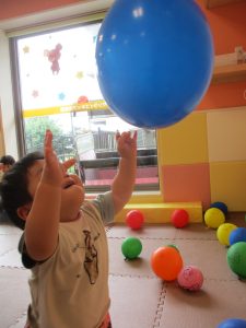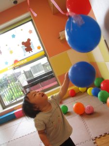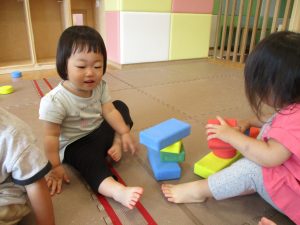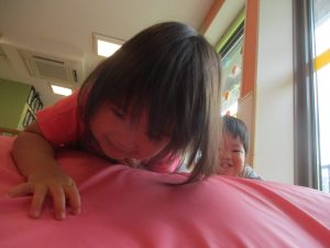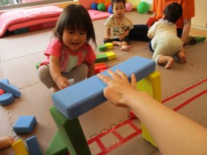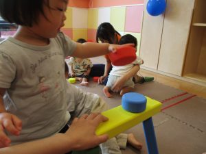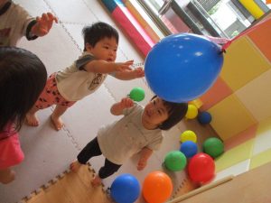 室内では風船やマットと使用して体を動かして遊んだり、ソフト積み木を楽しみました!