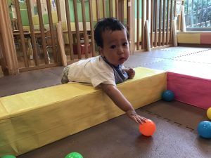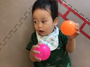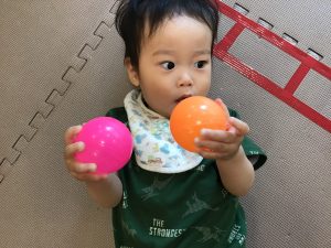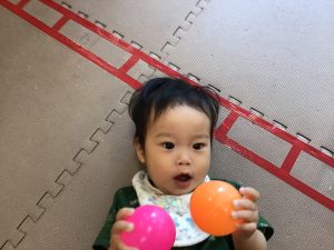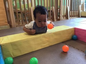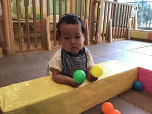 ボールプールが最近のお気に入りなのですが、気が付くとボールプールの外に出られるようになる程体の力がついており、成長を強く感じます。