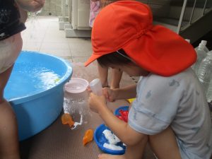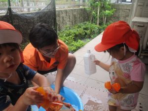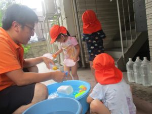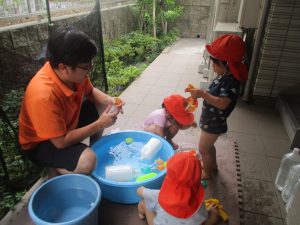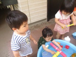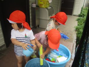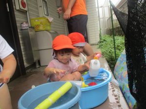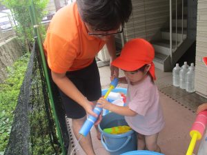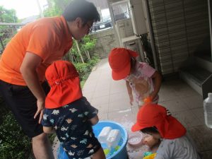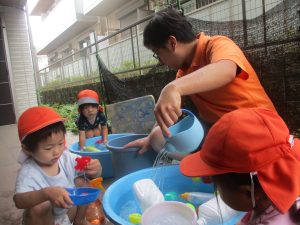 7月3週目、連日茹だるような暑さが続いておりますがその分水遊びも多く行え、お子様達もとても喜んでおります。