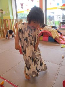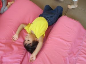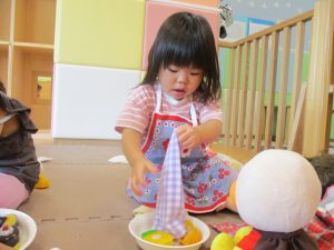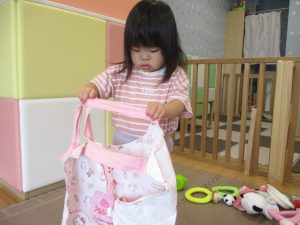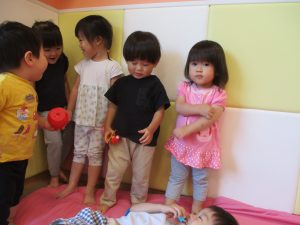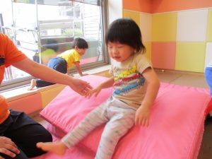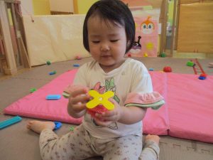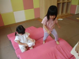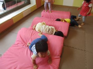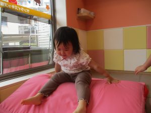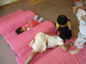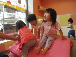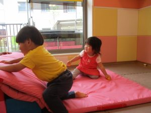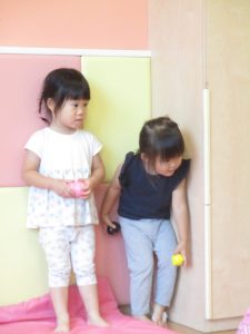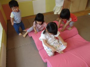 室内では平均台とマットを組み合わせた滑り台や、人形を使用したままごと遊びを楽しんでおります♪