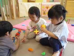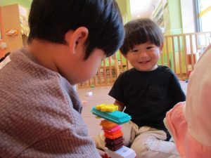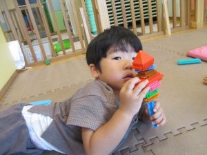 室内で過ごすお子様達も新しい玩具「ペタペタブロック」を楽しんでおります♪