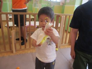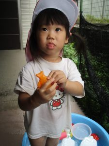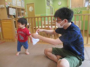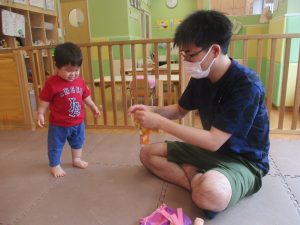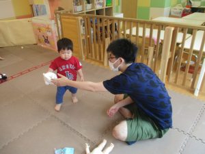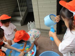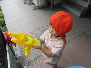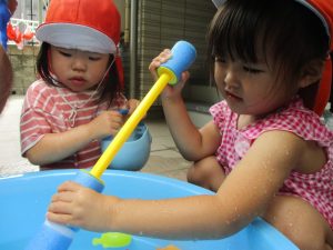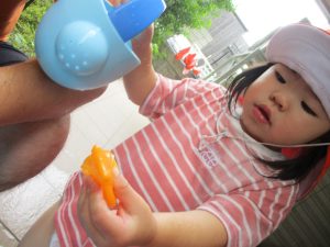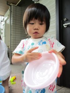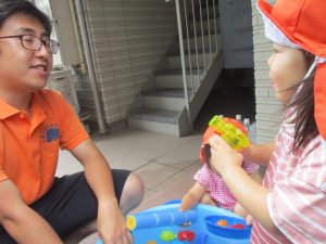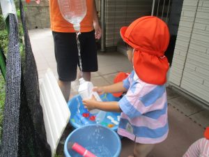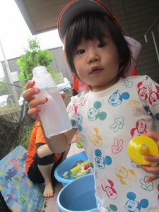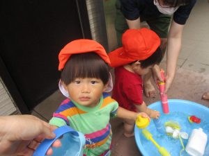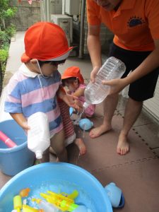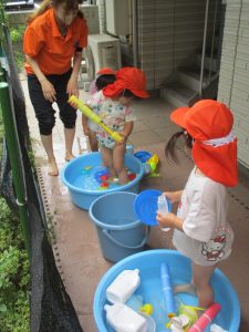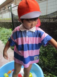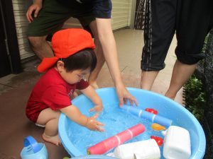 「明日もやろうね!」と声をかけるとニコッと笑顔を見せてくれ、充実した水遊びを実感といたします。