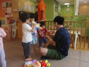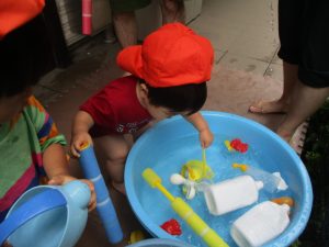 本日も保育参観(保育参加)と水遊びを行いました。