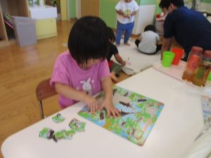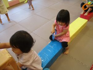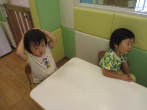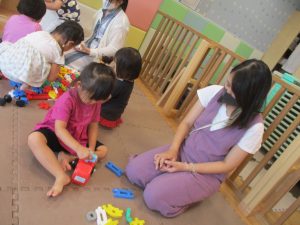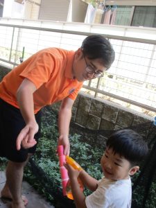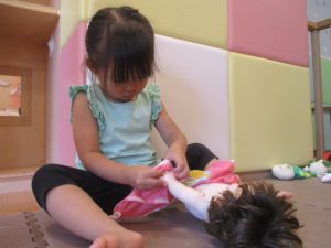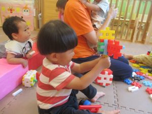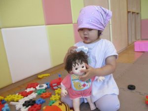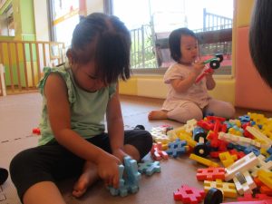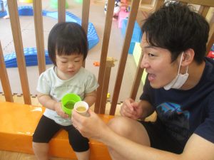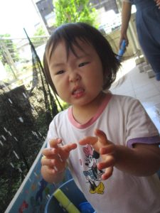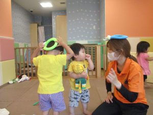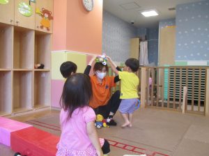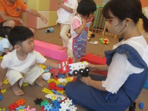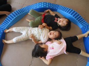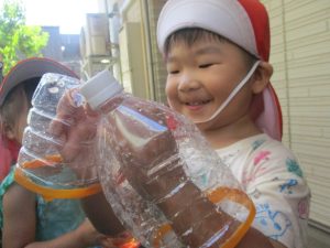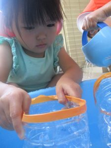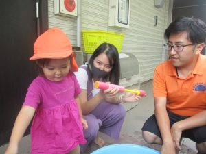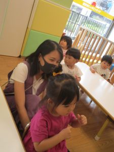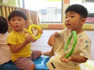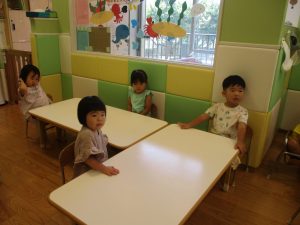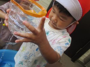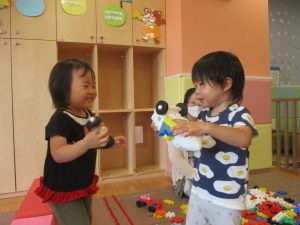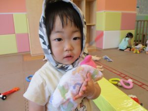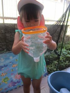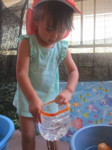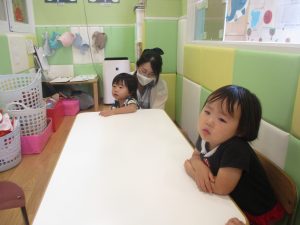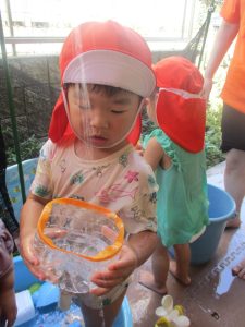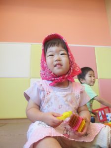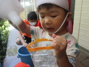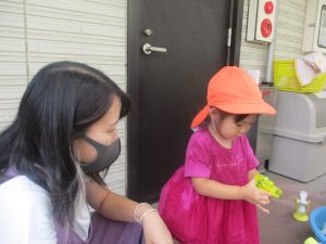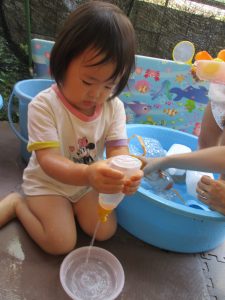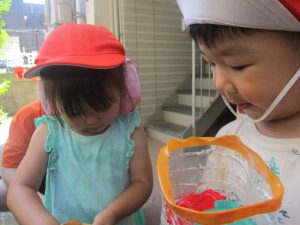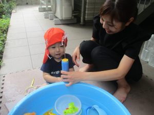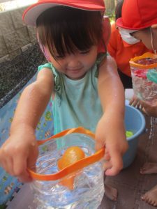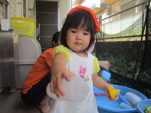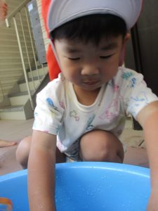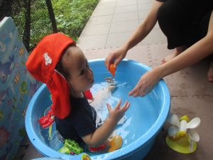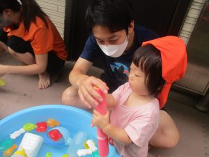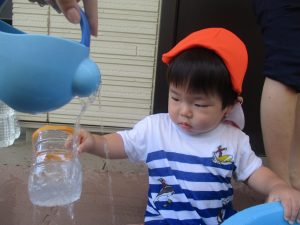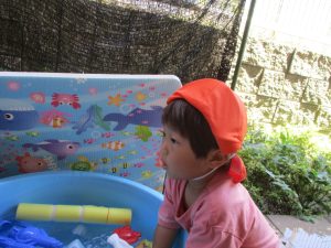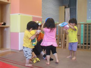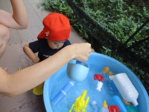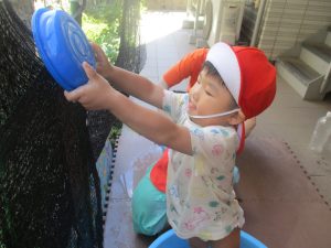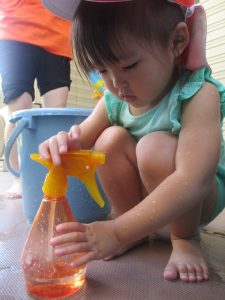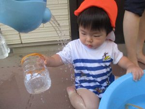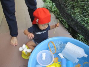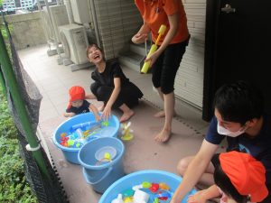 日中は水遊びを行ったり室内ではままごと遊びを楽しみました。