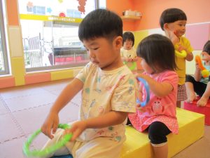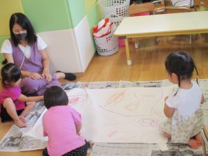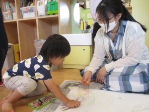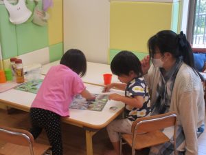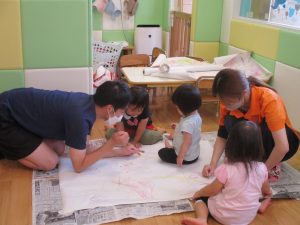 天気はそこまで良くありませんでしたが、日中は水遊びを行ったり室内では絵描きやサーキット遊びを楽しみました!