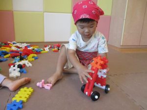 井形ブロックを使用してお子様顔負けの作品を作ったり、水遊びも共にご参加頂きました!