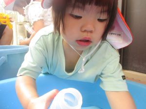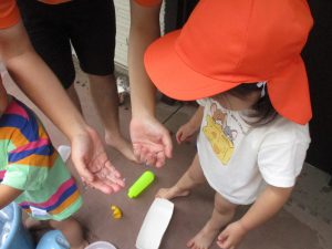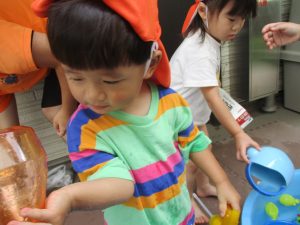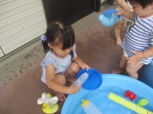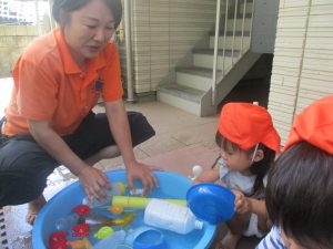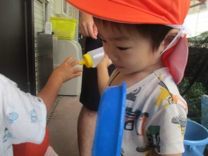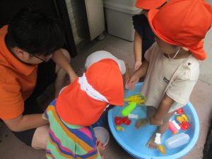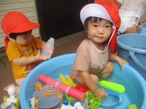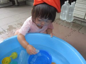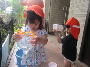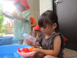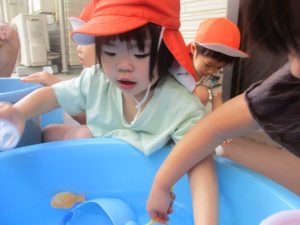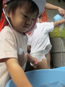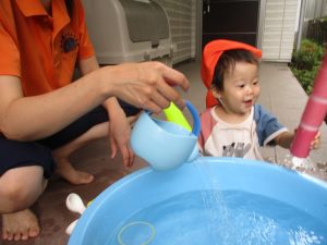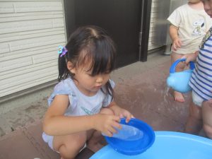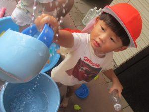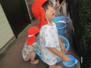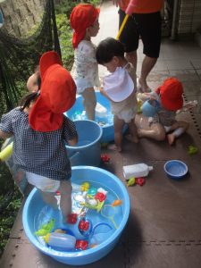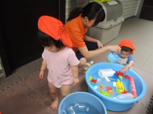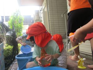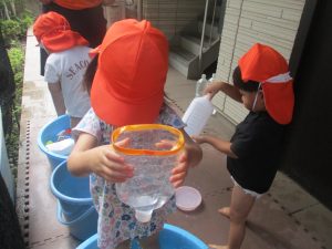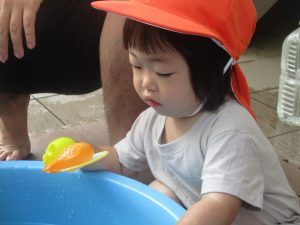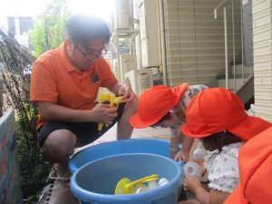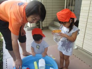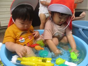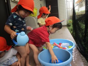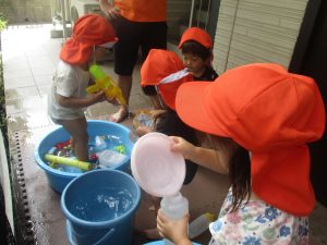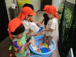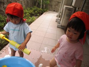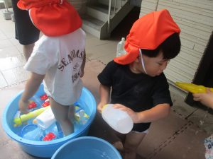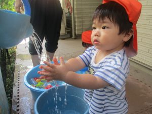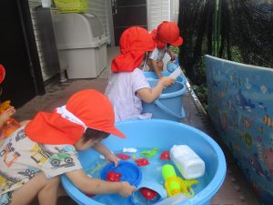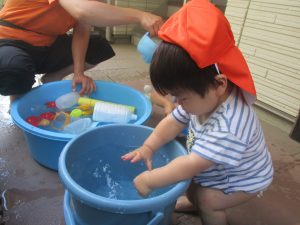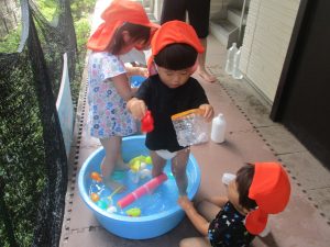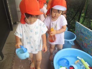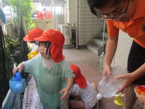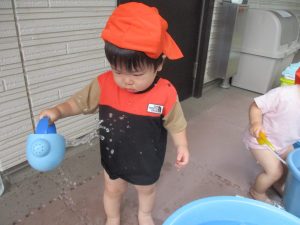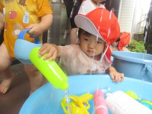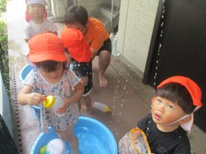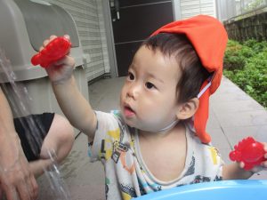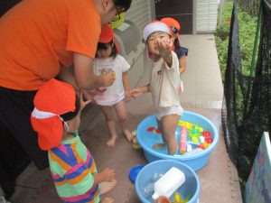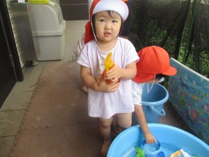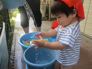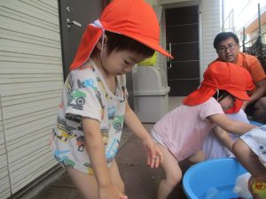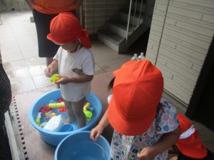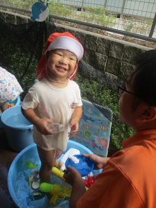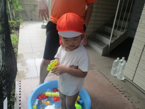 本日も水遊びを行いましたが、登園されたお子様のほとんどが実施でき有難く思います!
