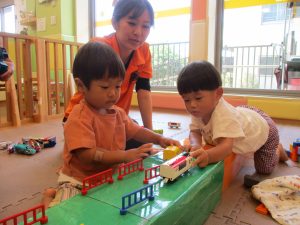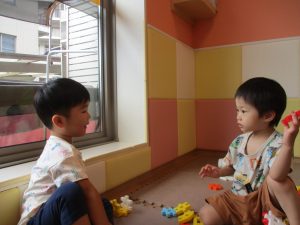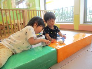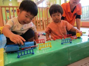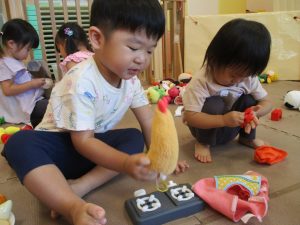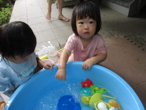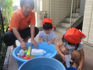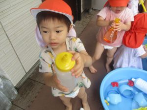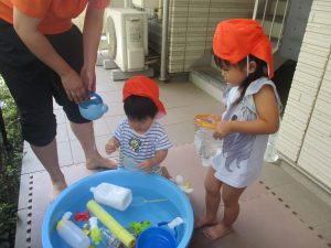 日中は室内遊びを楽しんだり、水遊びを行いました!