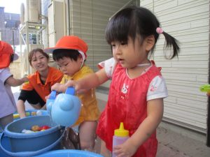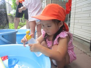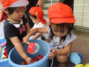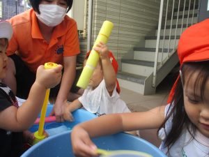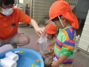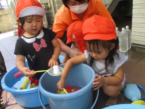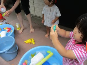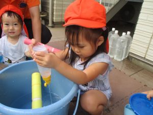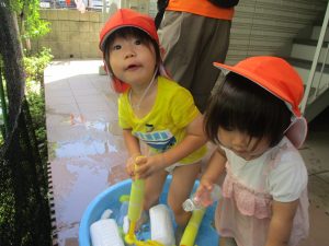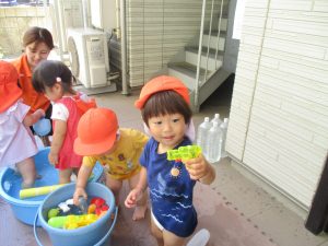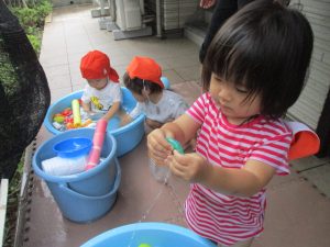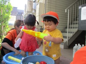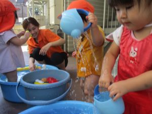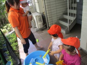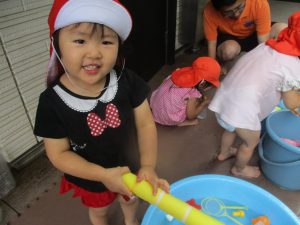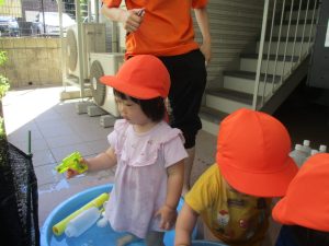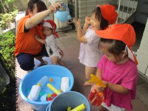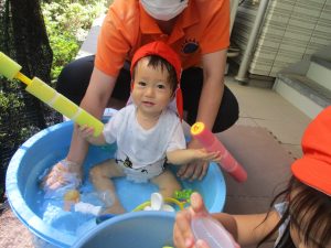 日中は水遊びを楽しみました!水遊び実施記録を更新中です。