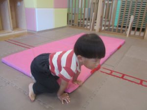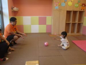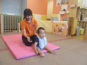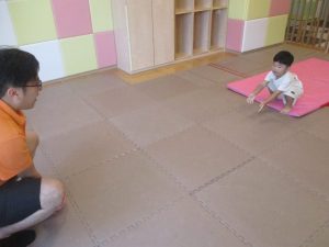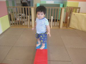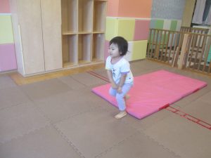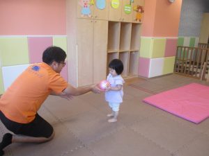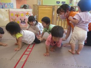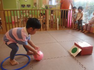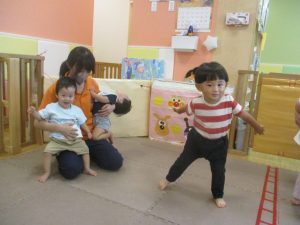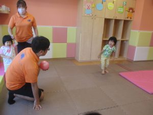 「キーック!!」とやる気と元気にあふれた2歳児クラスの友達を見て、小さいクラスのお友達も頑張ってみております♪