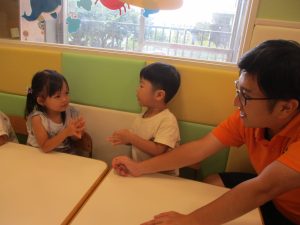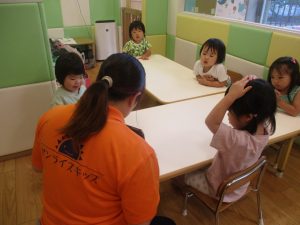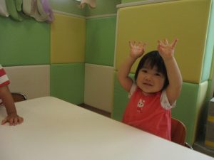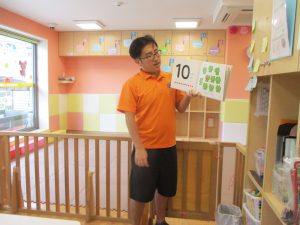 1~10までの数字が数えられるようになってきたお子様もおられますが、まずは、1~5までの英単語を”How Many Fingers?”の歌に合わせて手の指で表現をして覚えたり、先生と一緒にフラッシュカードなどいろいろなカードを使って楽しみながら覚えていったりしております。