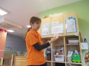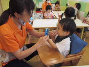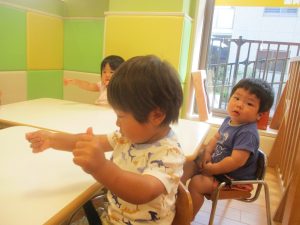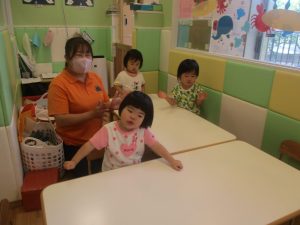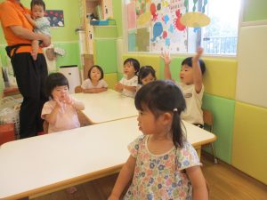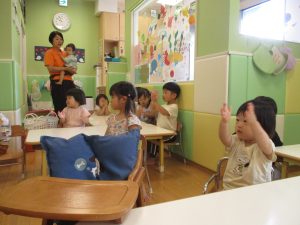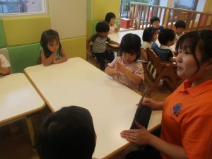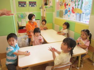 もちろん参加は自由ですが、谷津園のお子様達はみんなとても興味津々に参加をしており、毎日の日課として定着して来ているところです。