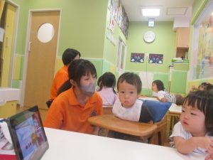 また、8月より夕方に★英語の学習タイム”えいごであそぼう”が設けられることになりました。
