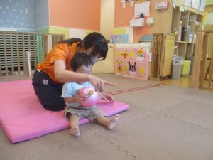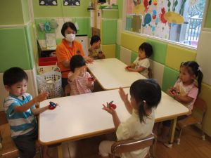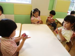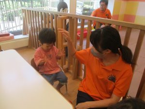 お子様達の馴染みのパンダの積み木を使った数覚え遊びも谷津園オリジナルで楽しんでおります。
