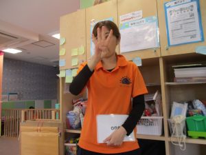 今月の英語では、1~5までの”数字”を学習しております。