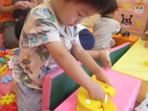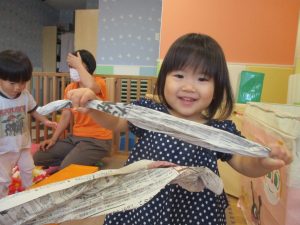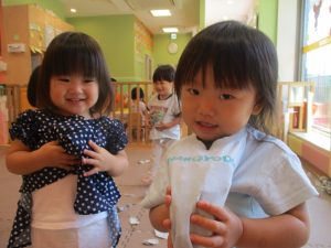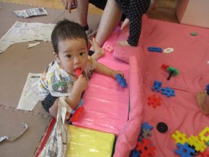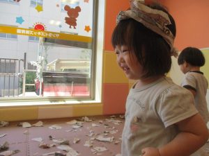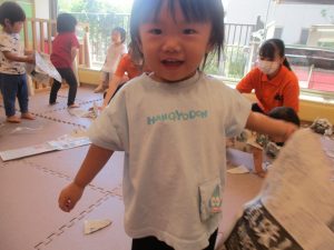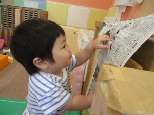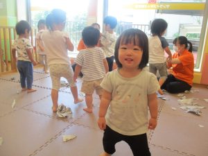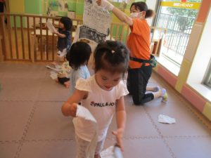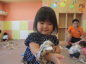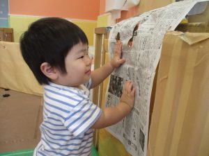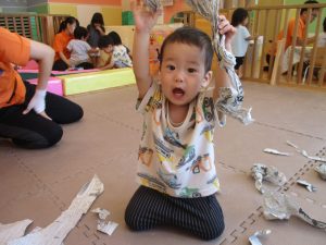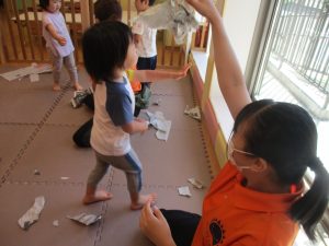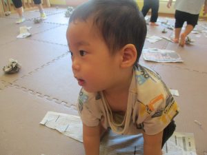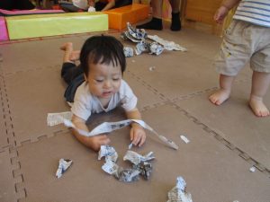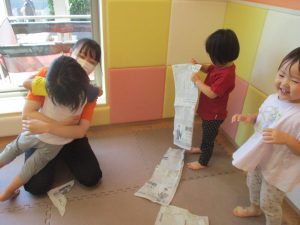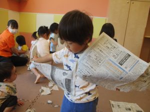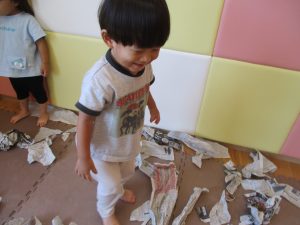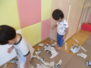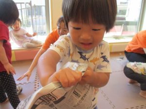粘土遊びを楽しんだり、新聞紙遊びを楽しみました。