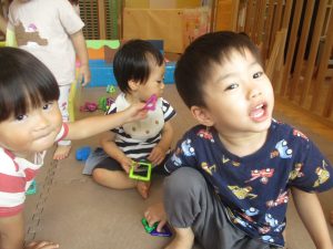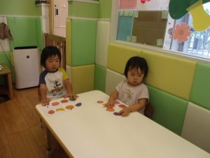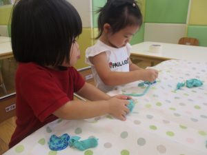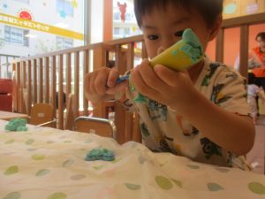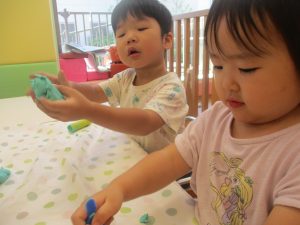 久々の粘土遊びに大興奮の2歳児クラスのお子様達でした♪