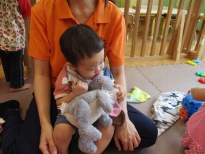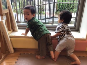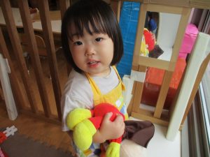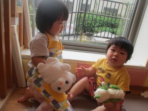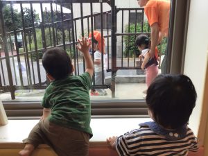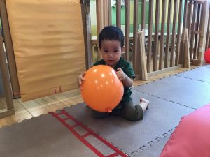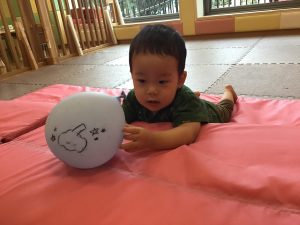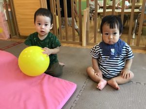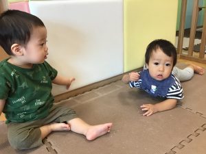 0歳児クラスのお友達はお留守番となりましたが、保育室の中を楽しそうに「ハイハイ」や「ずりばい」をして移動しておりました!
