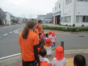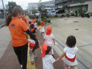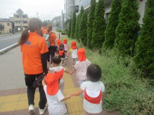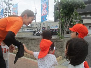 ピザ屋の前で匂いに誘われ立ち止まる子もおり、楽しい雰囲気の中行えました。