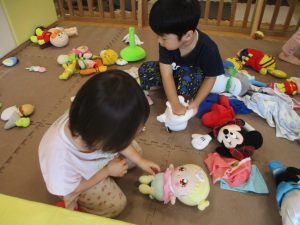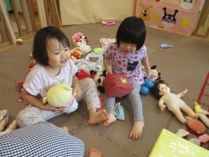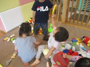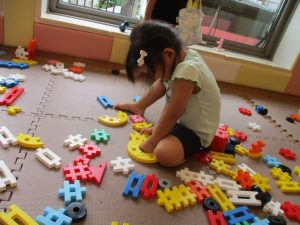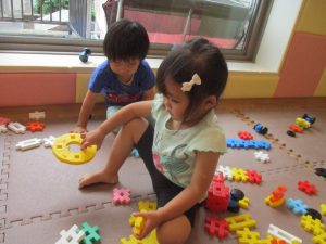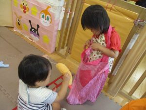 井形ブロックで思い思いの物を作ったり、ままごと遊びに夢中でした。