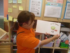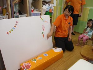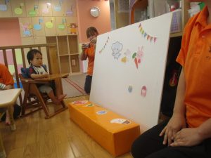 誕生会の前と言う事もあり、果物がケーキに変身していく絵本を選ばせて頂きました。