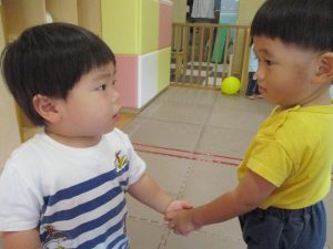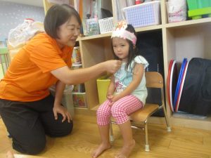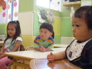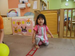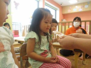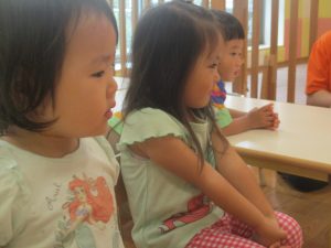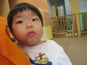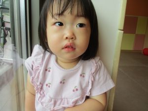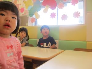 2歳児クラスの女の子。とても緊張しておりました。笑