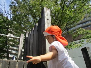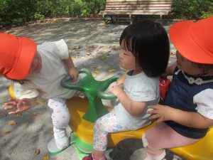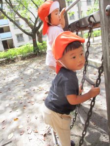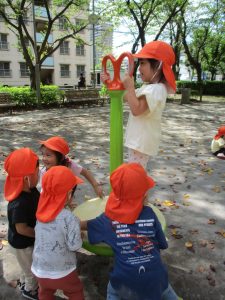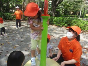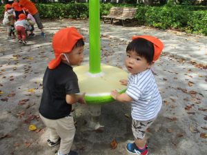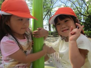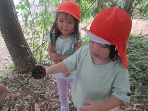 固定遊具を使用して心行くまで体を動かしたり、自然物に触れ合い楽しい時間を過ごしました。