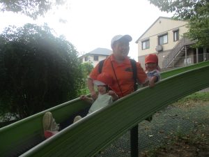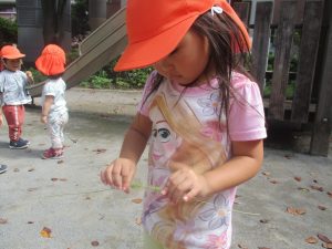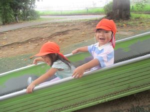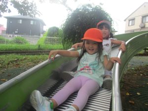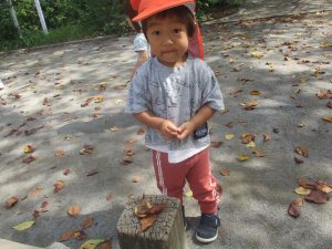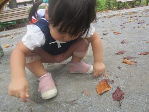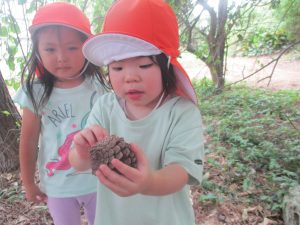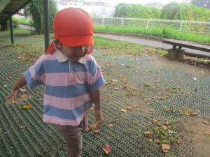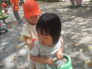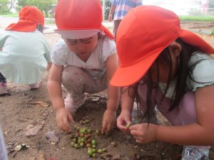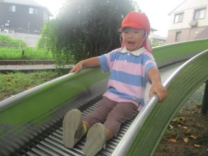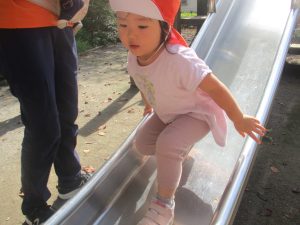 ローラー滑り台で体を動かしたり、木の実探しを先生と一緒に楽しみました!