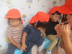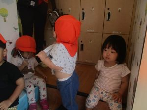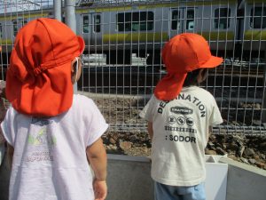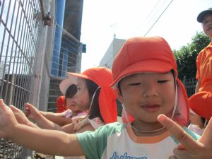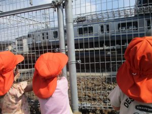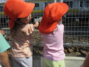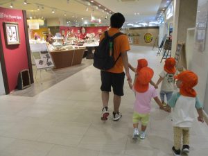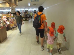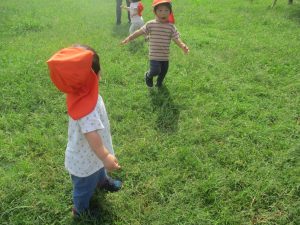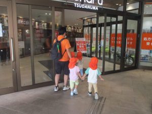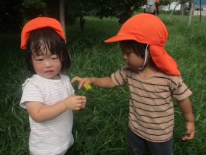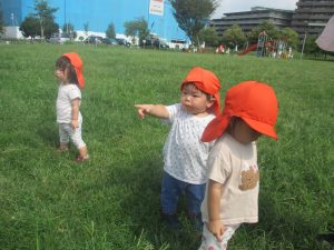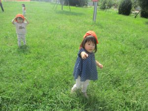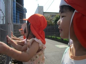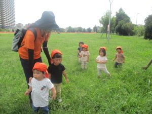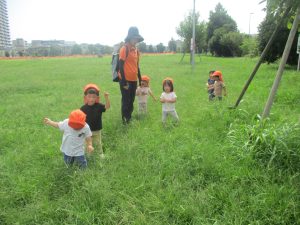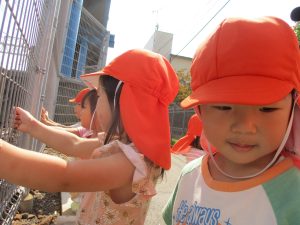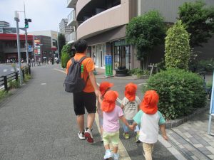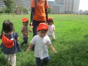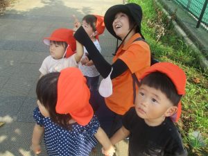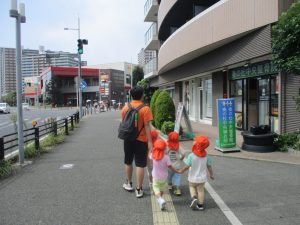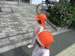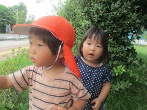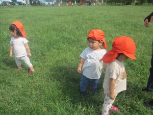 1歳児クラスのお友達も、1歳児クラスのペースでのんびりと散歩が行えますね!
