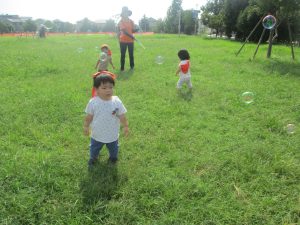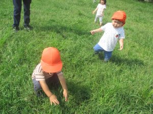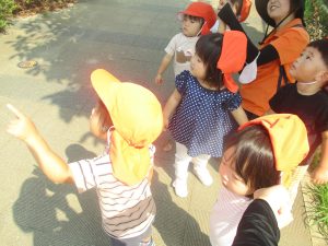 分かれて散歩が行える日は、それぞれの年齢でしか出来ない活動を心がけ特に2歳児クラスのお友達は遠出の散歩が可能ですね。
