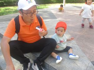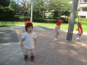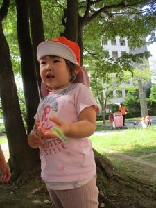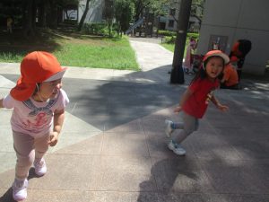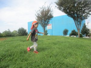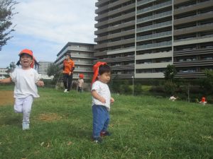 公園内の広場で思い切り体を動かして遊び、大満足の様子でした♪