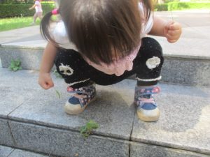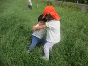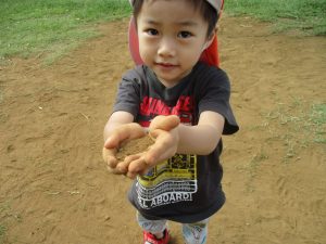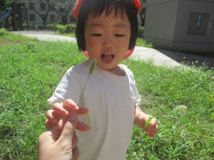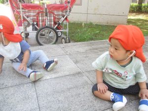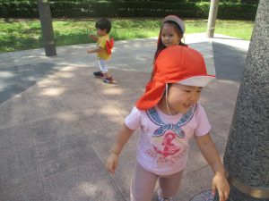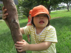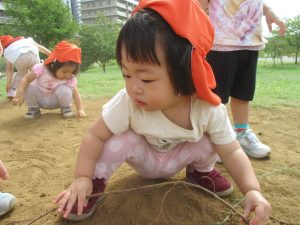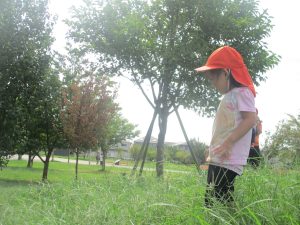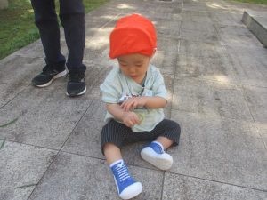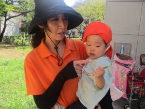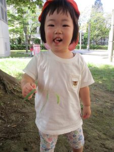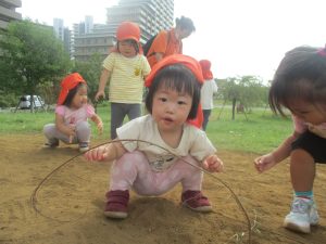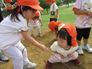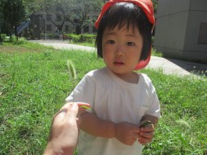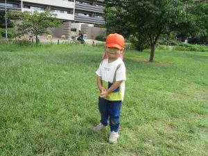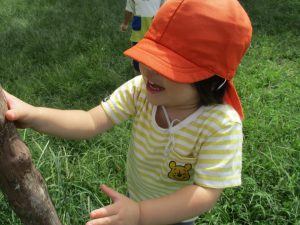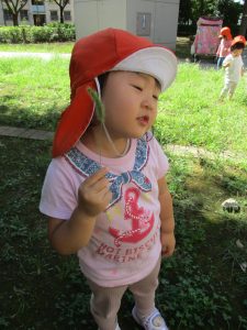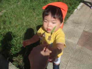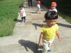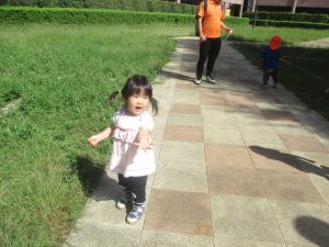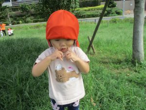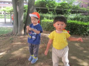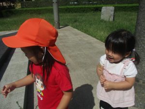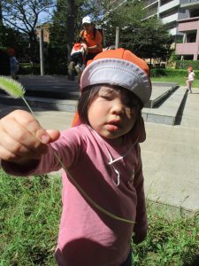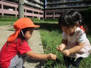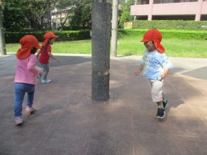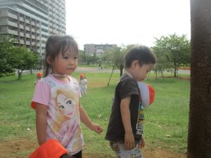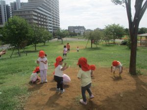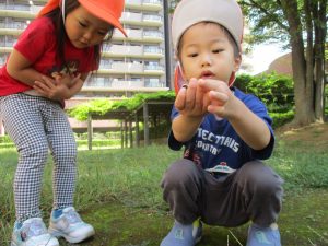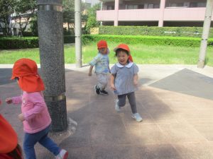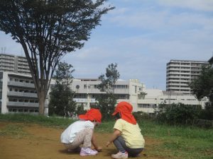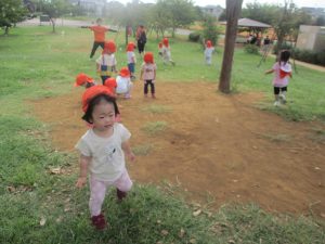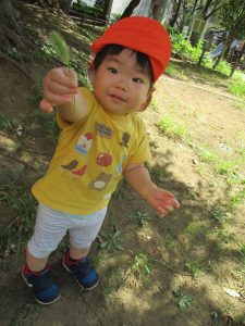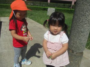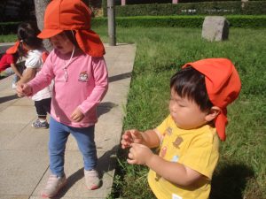 広場での追いかけっこを楽しんだり、自然物探しに夢中でした。