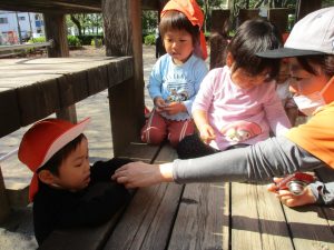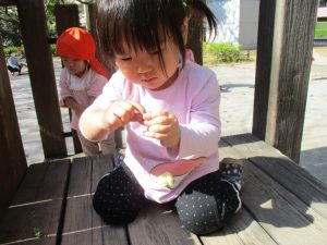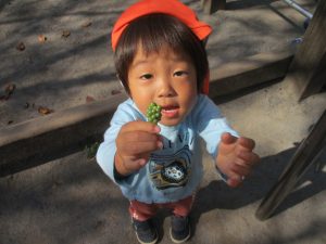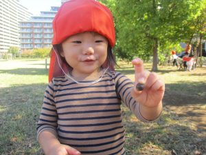 たくさんの木の実を保育園に持ち帰り、大満足の様子が表情から伝わって参ります♪