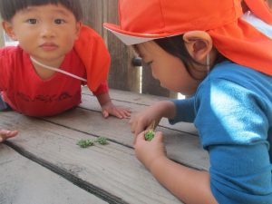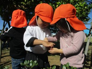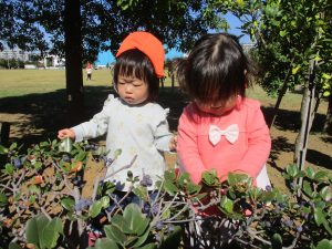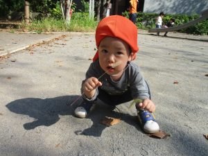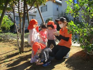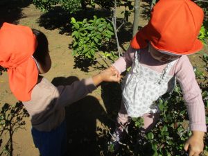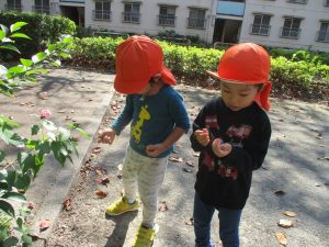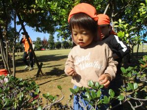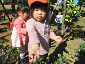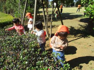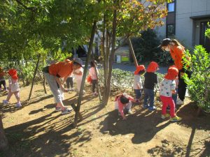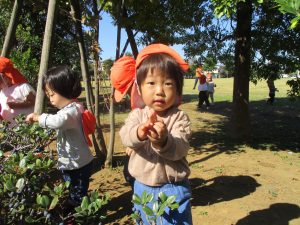 広場で思い切り体を動かしたり、木の実探しに夢中でした!