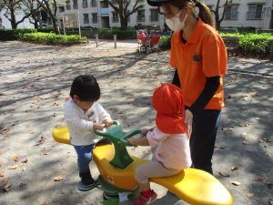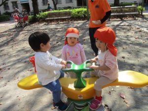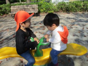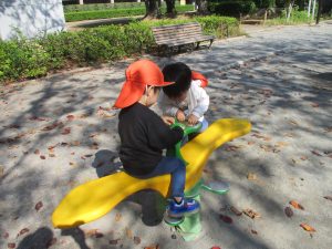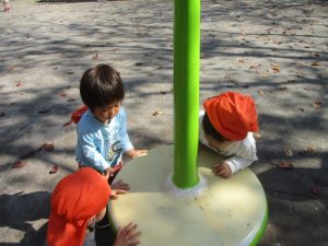 木の実探しを楽しんだり、固定遊具を使用して楽しそうに体を動かしておりました♪
