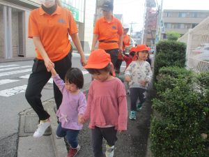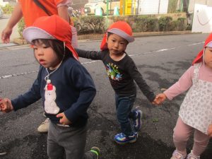 1.2歳児クラスのお友達も手を繋いで歩くのが上手になりましたね!大きな成長を感じます♪