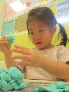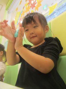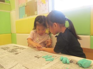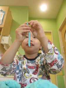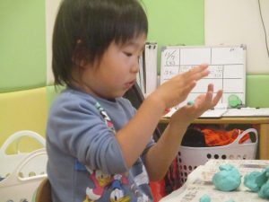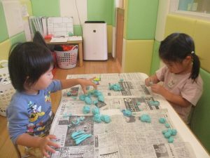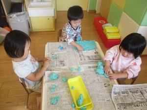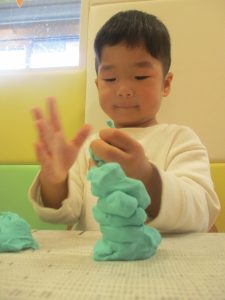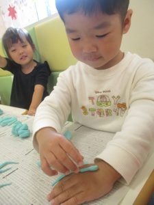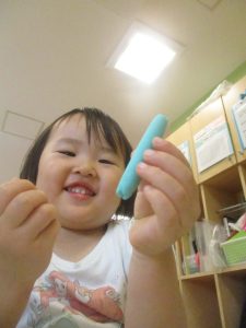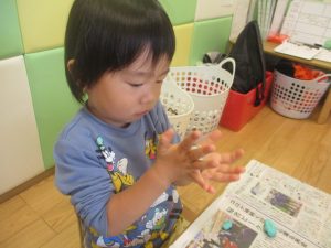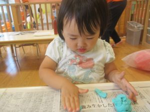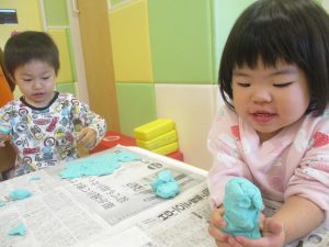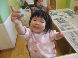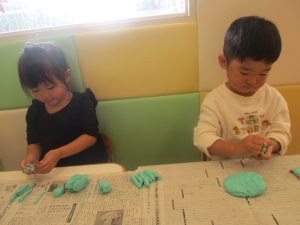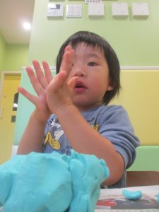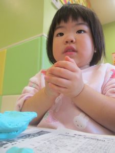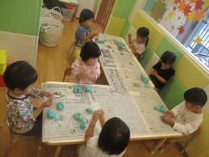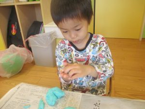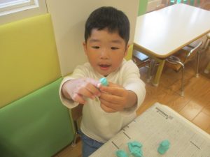 2歳児クラスのお友達は粘土遊びに夢中で、皆が思い思いの作品を仕上げておりとても楽しそうでした♪