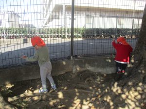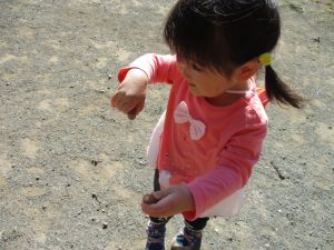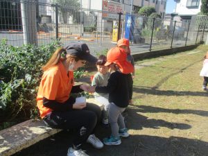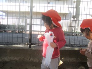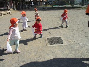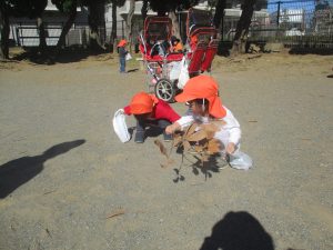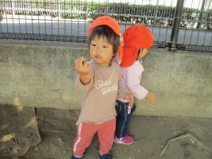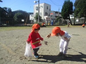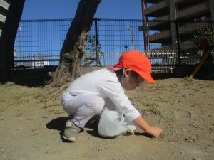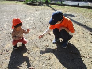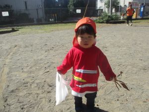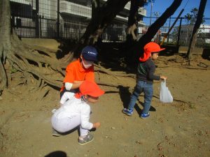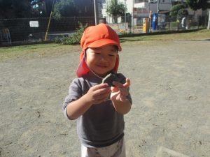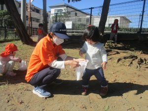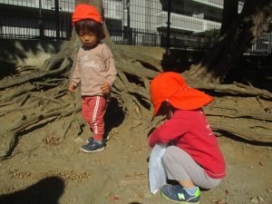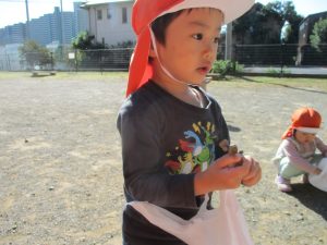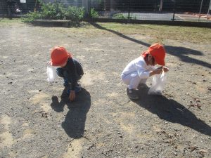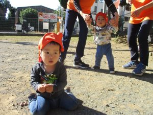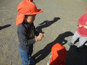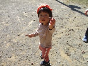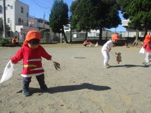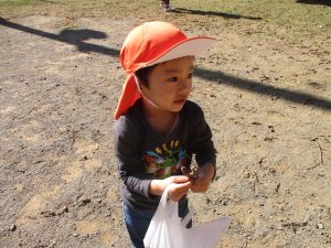 前日の強風の影響で木の実がたくさん落ちており、皆でたくさんの木の実を収穫いたしました。