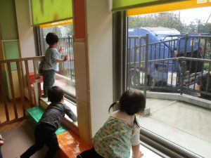 日中は線路沿いの戸外散歩を楽しみ、行き交うたくさんの電車を見てとても喜んでおりました。