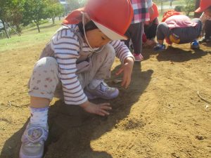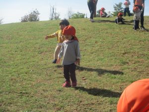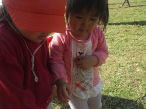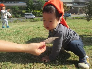 広場での追いかけっこを楽しんだり、自然物探しに夢中でした。