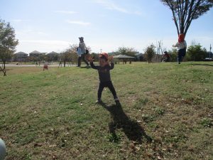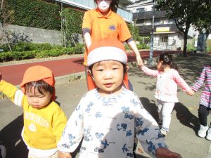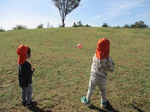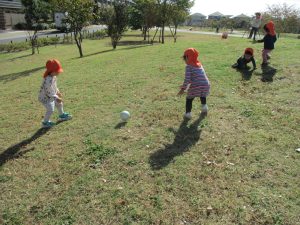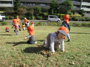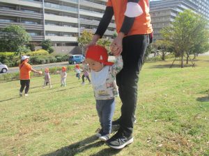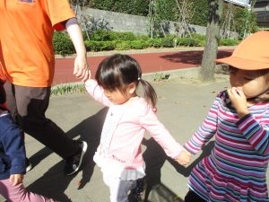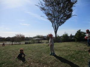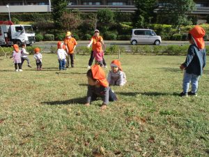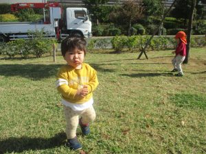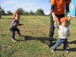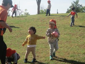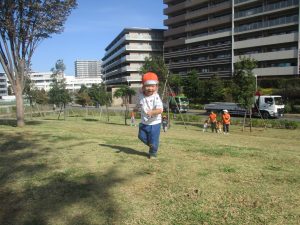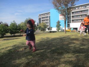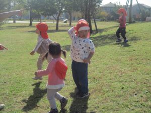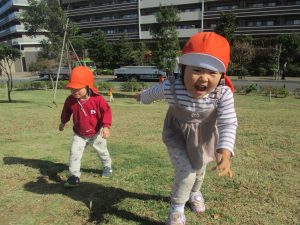 また、戸外で過ごすにもちょうど良い季節となっており、広場での追いかけっこを通して思い切り体を動かして遊んでおります。